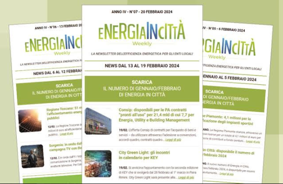 Energia in Città Weekly: è disponibile il nuovo numero della newsletter settimanale incentrata sulle tematiche dell’efficienza energetica e della transizione ecologica negli enti locali.